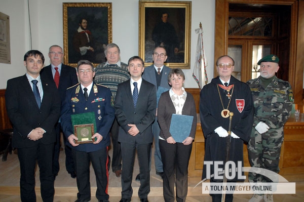 A díjat vitéz lovag Kovács János nõr. vezérõrnagy vette át, a Magyar Nemzetõrség Tolna megyei elnöke, kíséretében Markovics Mihály nõr. törzszászlós, bonyhádi alegységünk tagja volt jelen.